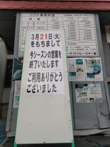 3月21日(火)をもちまして今シーズンのスキー場の営業を