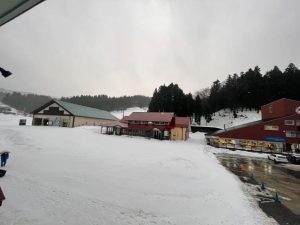 現在の第一ゲレンデはあいにくの雨(みぞれ混じり)・・・