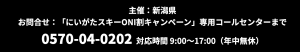 ONI割の発券方法のお問い合わせが増えてきておりますが、キャンペーンの詳細については、ONI割専用コールセンターまでお問い合わせいただく方が、解決が早いと思われます。