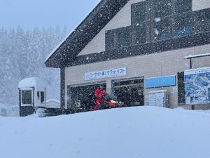 積雪不足の為期間延期とさせていただいております今シーズンの営業ですが、ようやく25日(土)から纏まった積雪がありましたので、1日も早くみなさまをお迎え致したく、本日早朝から、スタッフ総出で鋭意オープンに向けて準備作業を実施しております。