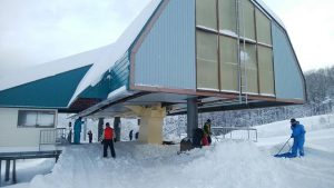 第一クワッドリフト乗り場の様子 各リフトの整備に向かうところです